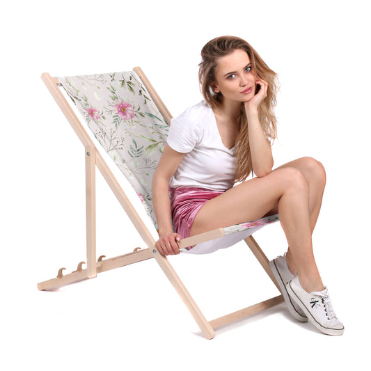 Holz Liegestuhl Delicate Pink Flowers