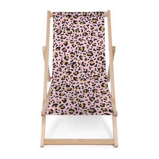 Holz Liegestuhl Leopard Pink